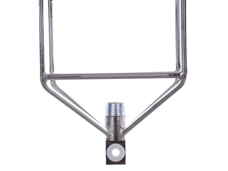 Frames are manufactured with 316L stainless steel. The frames are then electropolished and fitted with replaceable zinc anodes for superior corrosion resistance. Upper and lower bails are fitted with isolation bushings and allow connection to the mooring line with standard shackles. The clamps are adjustable for ease of use with varying instruments and are lined with an elastomeric sheet to secure the instruments from damage, while isolating them from the frame.
