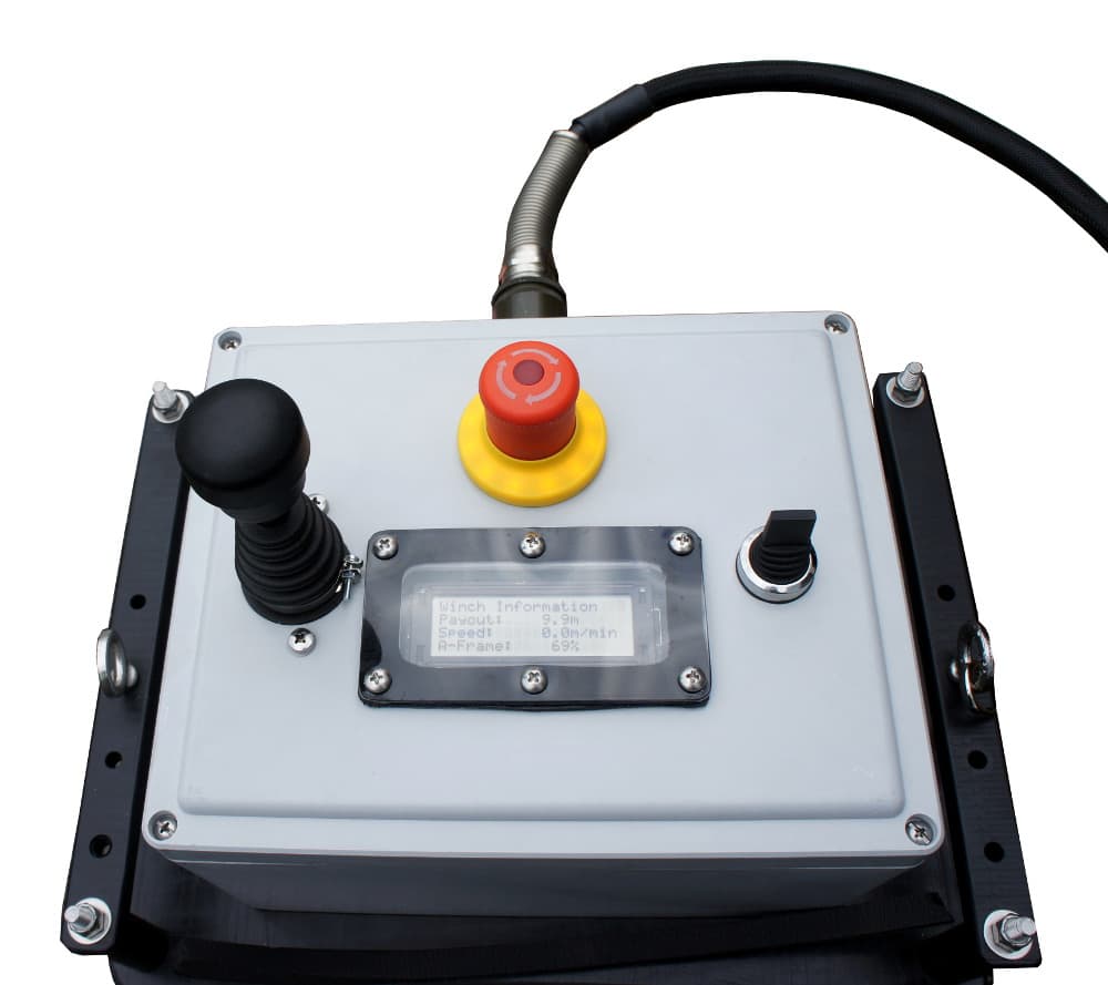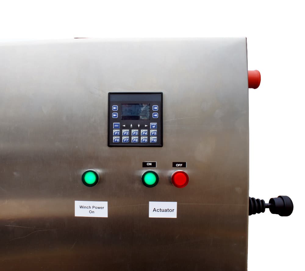 - Programmable PLC HMI interface for A-frame control and wire counter information on the winch enclosure box
